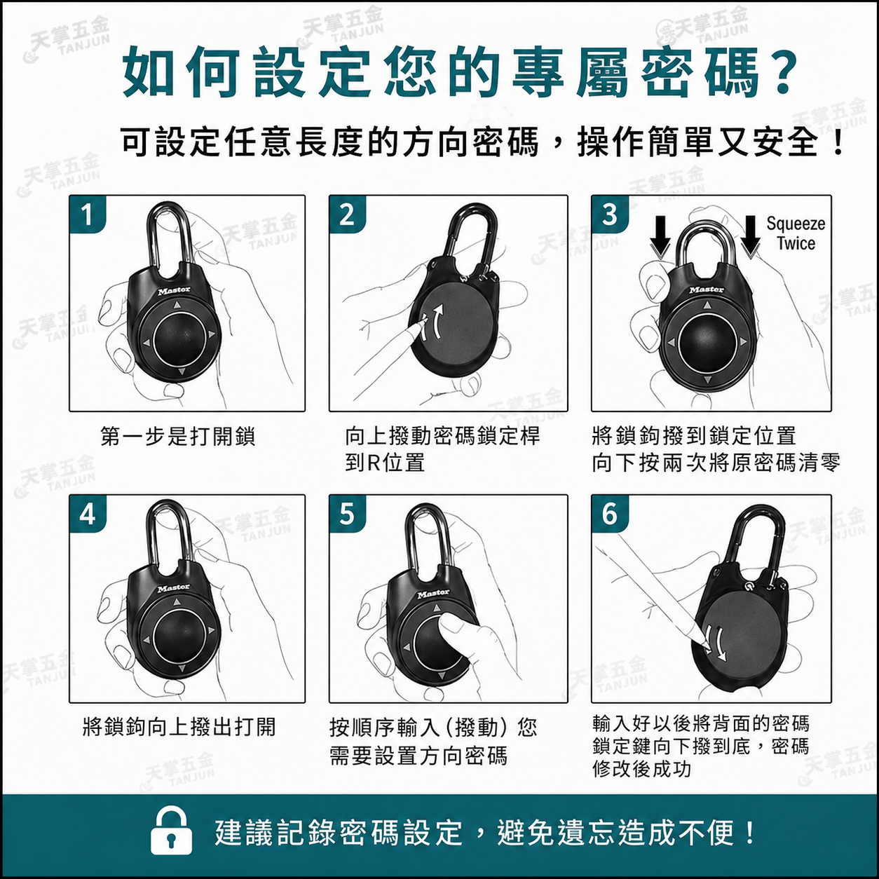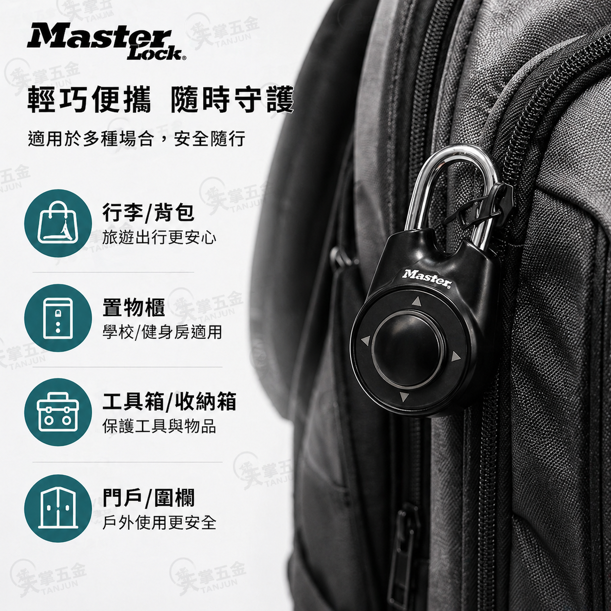 Master Lock 1500iD 為 Speed Dial 方向密碼掛鎖,採用上下左右方向動作輸入密碼,不需攜帶鑰匙,適合置物櫃、工具箱、收納櫃、行李箱、運動置物櫃與一般個人物品上鎖使用。