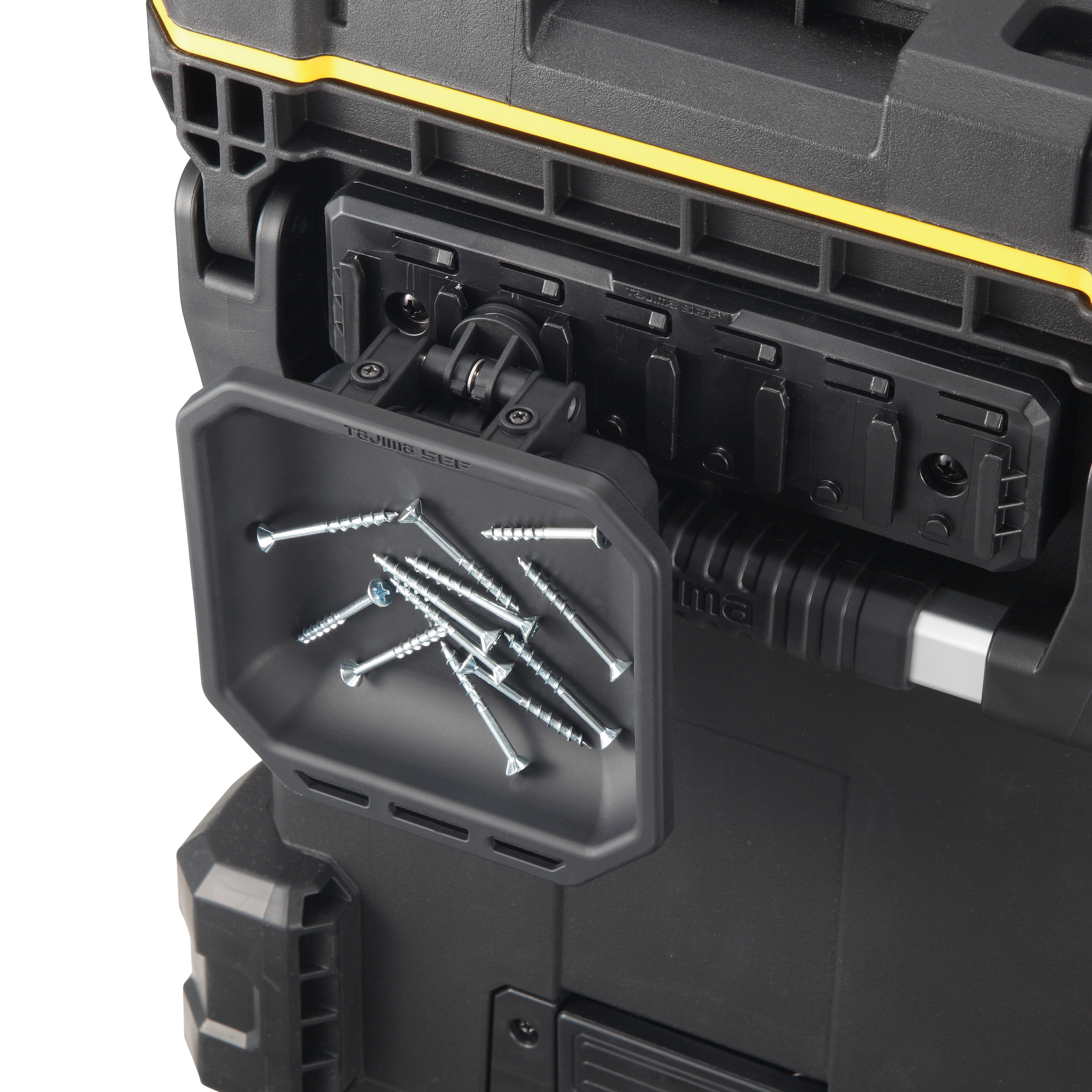 TAJIMA SFMTR-BS 為快扣式樹脂磁吸盤 S 螺絲用,適合施工現場暫放螺絲、起子頭、小零件、墊片與五金配件,避免零件散落或臨時找不到。可搭配 TAJIMA SEF 快扣系統使用,也可平放於工作台上使用。
