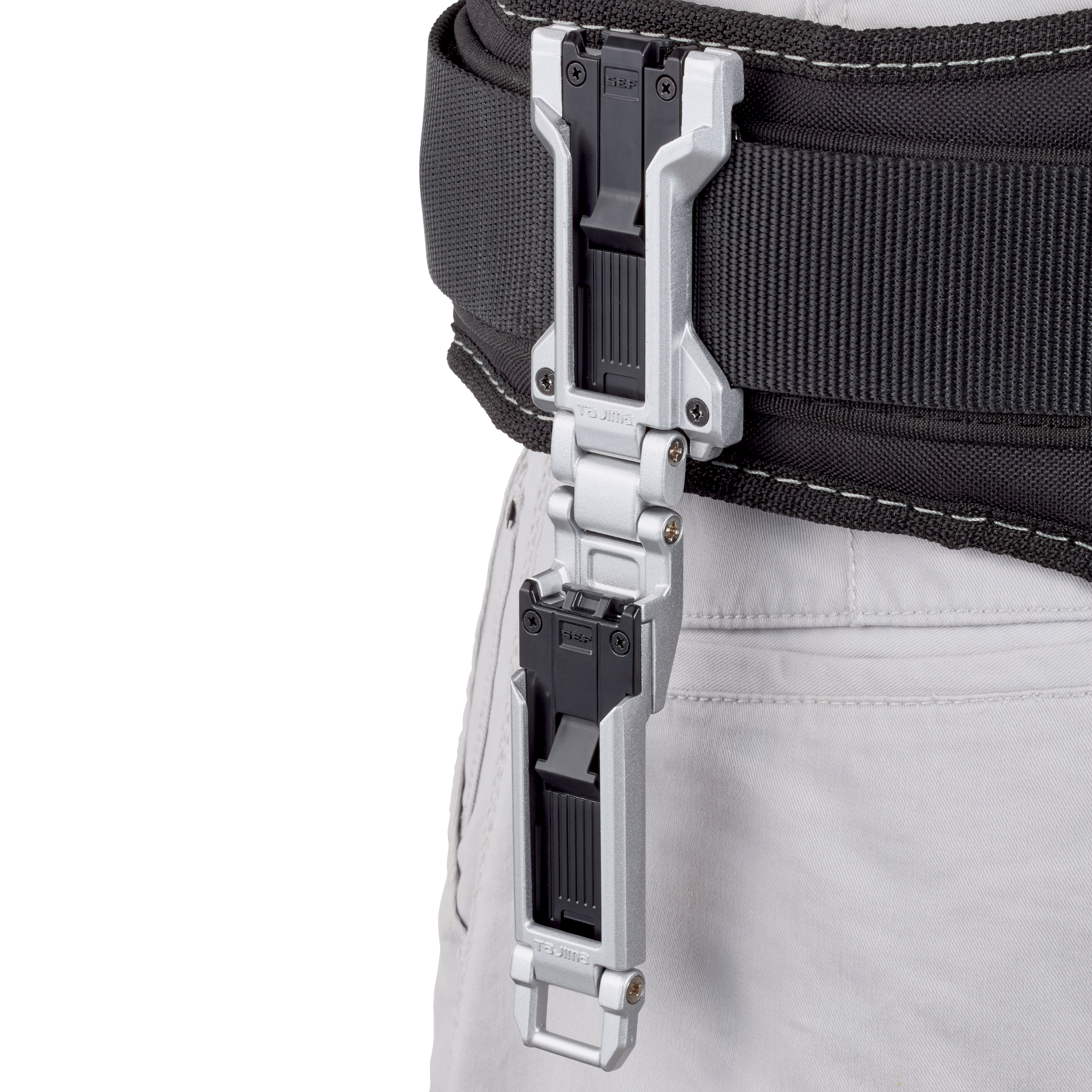 TAJIMA SFP-MSUHLD 為 Custom 安全扣系列的金屬下段用安全扣支架,屬於下段連結專用配件。可搭配對應的 TAJIMA Custom 安全扣產品使用,組成上下 2 連安全扣配置,讓腰帶工具收納更集中、更有彈性。