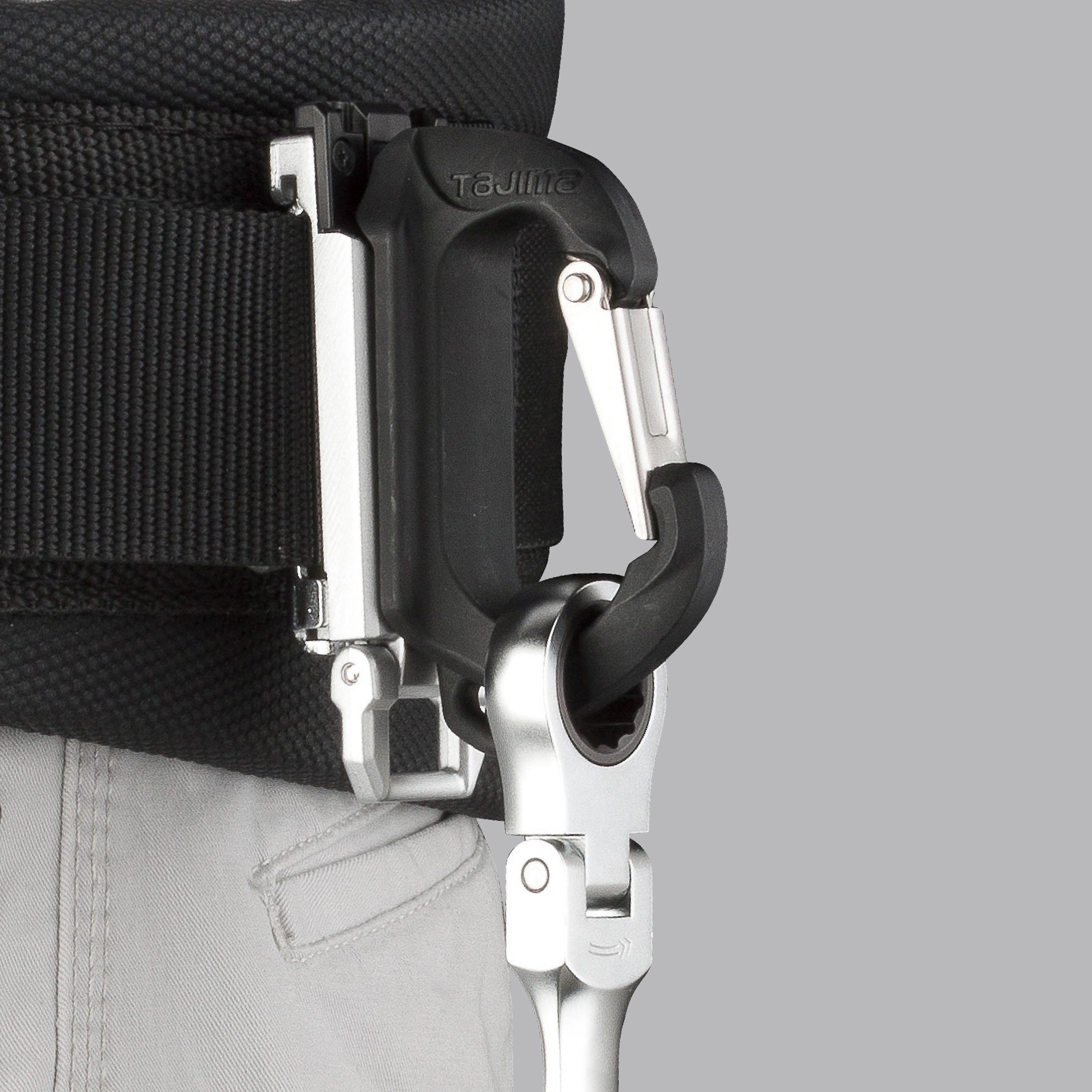 TAJIMA SFSKHR-CS 為快扣式工具掛勾輕量C型小窄版,適合搭配 TAJIMA SEF 快扣系統、工作腰帶與施工腰帶使用,可吊掛梅花板手、手工具、掛鉤類工具等常用工具,讓現場作業取放更快速。