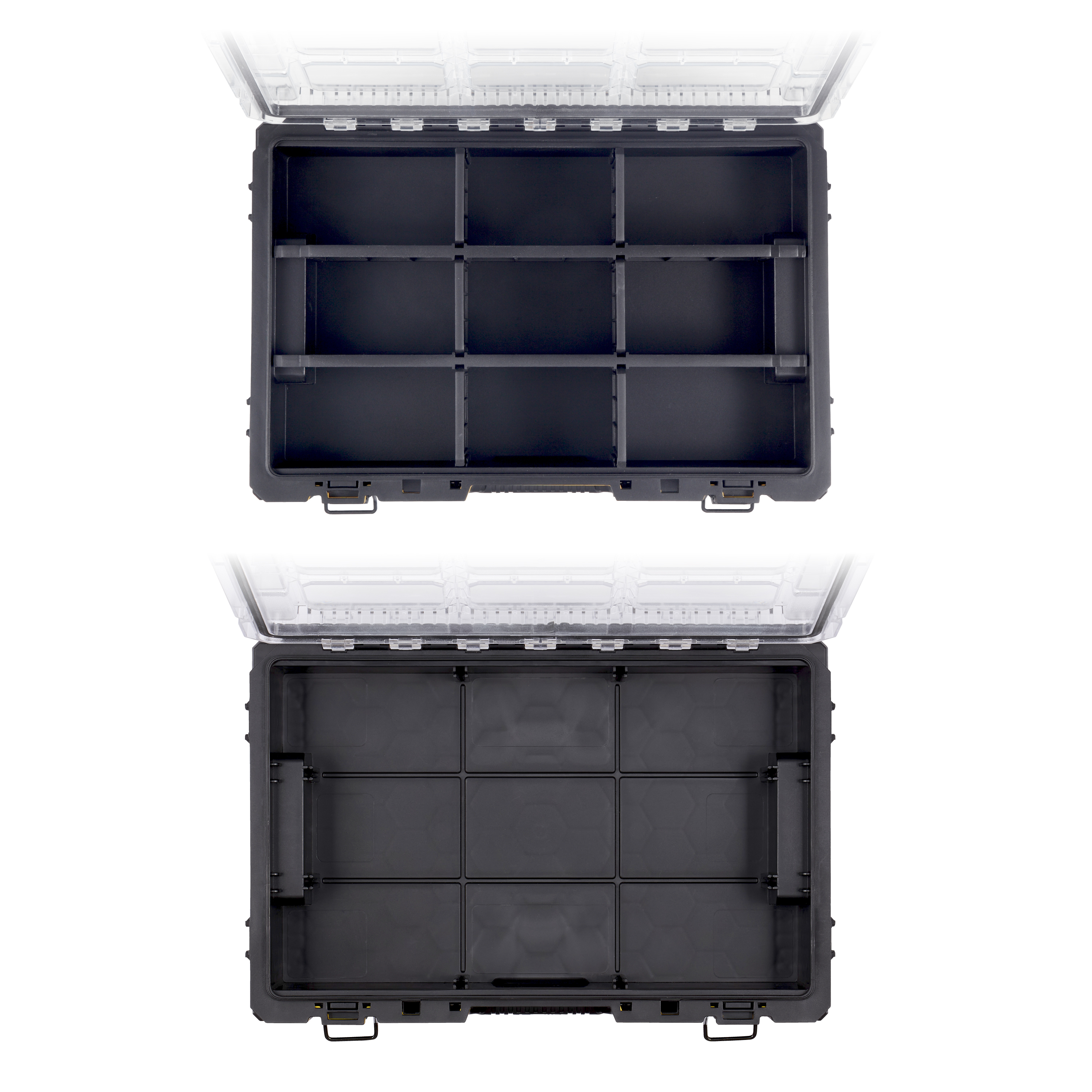 ・透明上蓋設計,不用打開箱蓋也能快速查看內容物,整理更有效率。