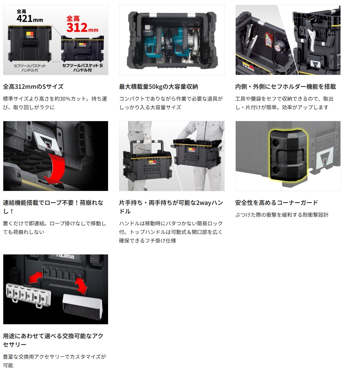 TAJIMA,田島,TB-TBSKSH,TBTBSKSH,工具籃,快扣式工具籃,提把工具籃,工具收納籃,工具提籃,車載工具籃,堆疊工具籃,工具箱提籃,SEF,セフ