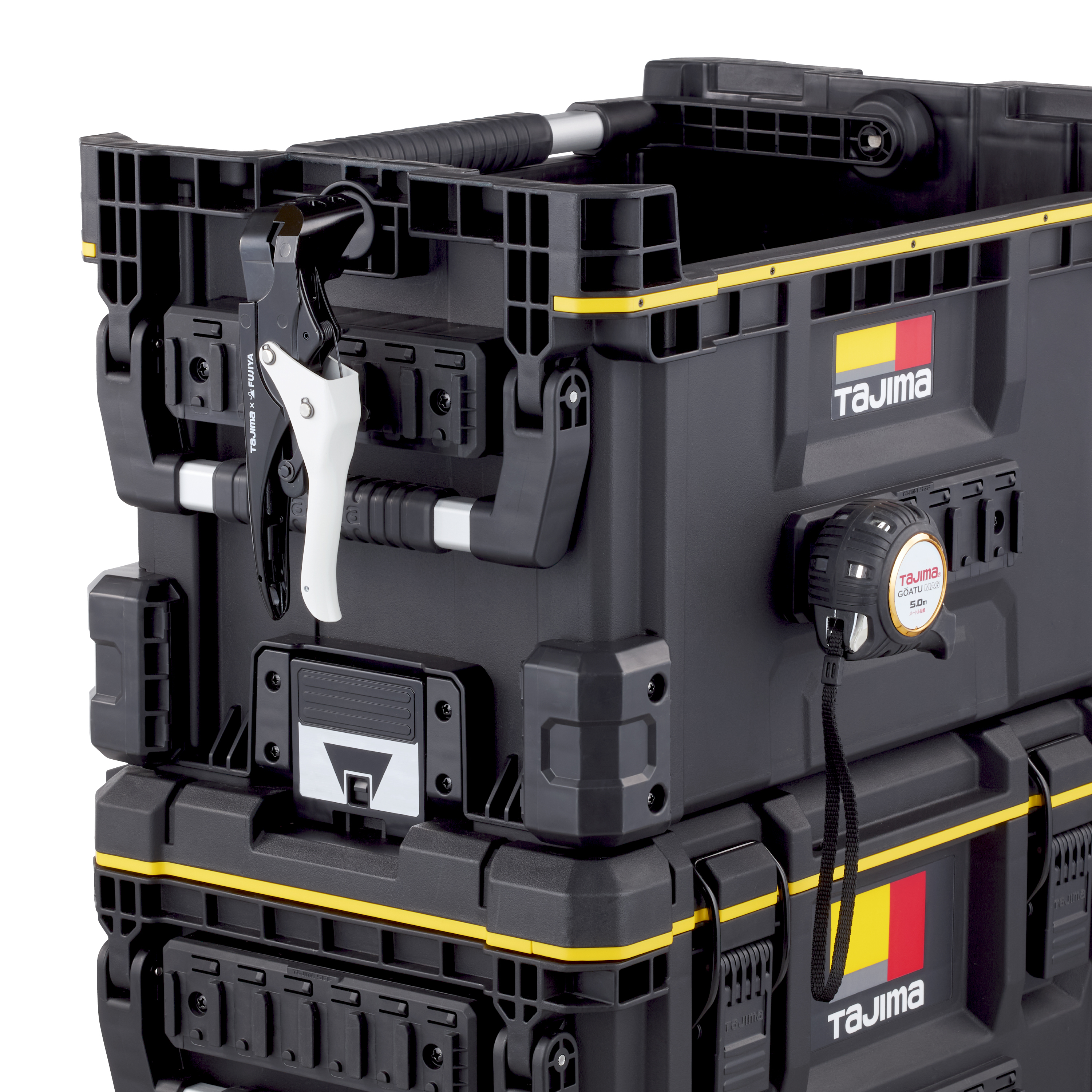 TAJIMA TB-TBSKSH 為快扣式工具籃附提把 S 尺寸款,整體高度較標準款更低,搬運、上下車與日常收納都更靈活。內外皆搭載快扣固定功能,可搭配 TAJIMA 快扣工具、工具袋與收納配件使用,適合打造更有效率的工具整理系統。